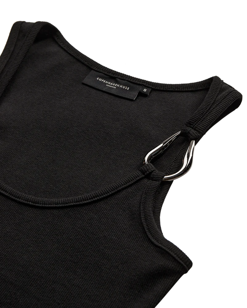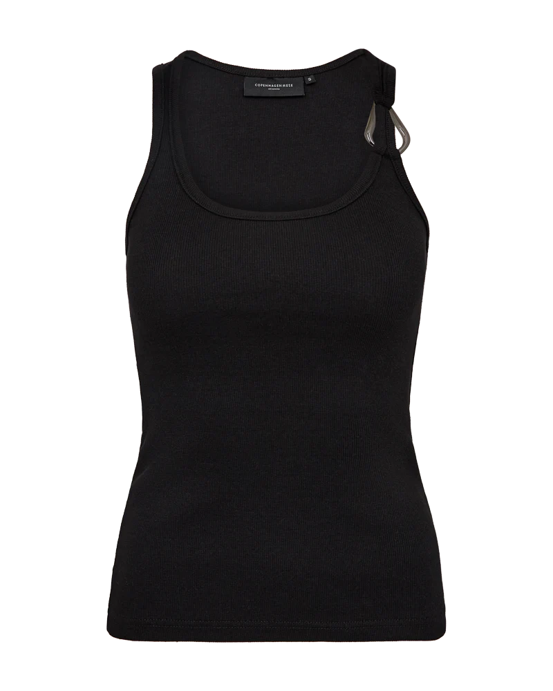 CMSIV-TOP is a tight-fitting top in a thick and stretchy material with a ribbed texture. The top has a rounded neckline, wide shoulder straps and a buckle detail in one of the shoulder straps.